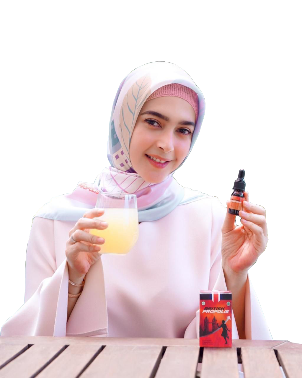 - Teteskan 2-3 tetes British Propolis ke dalam 50 ml air hangat (suam-suam kuku).